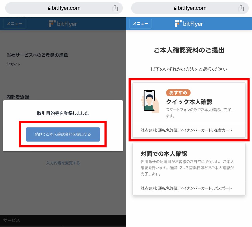 - 順番に進めると、本人確認の案内が出ます。