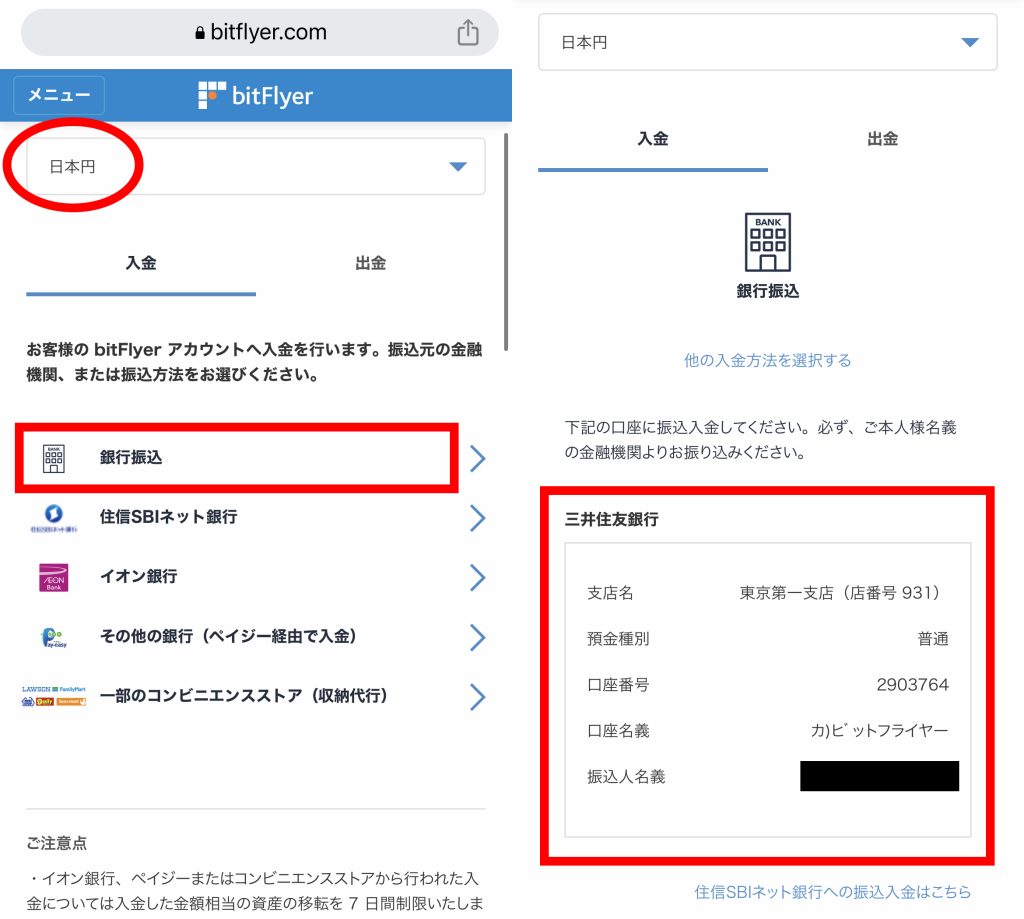 - まずは先程作った口座に、日本円を預け入れます。