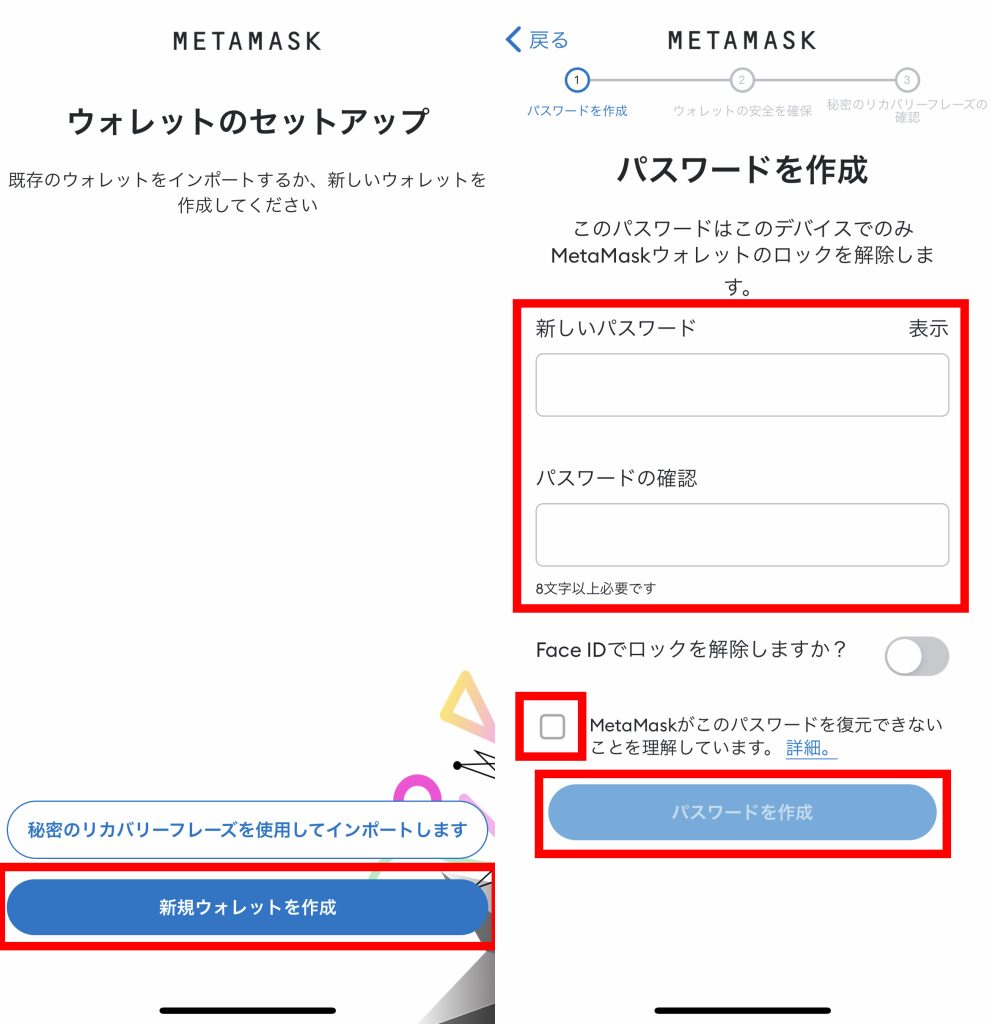 - アプリを起動して、【新規ウォレットを作成】を選択します。