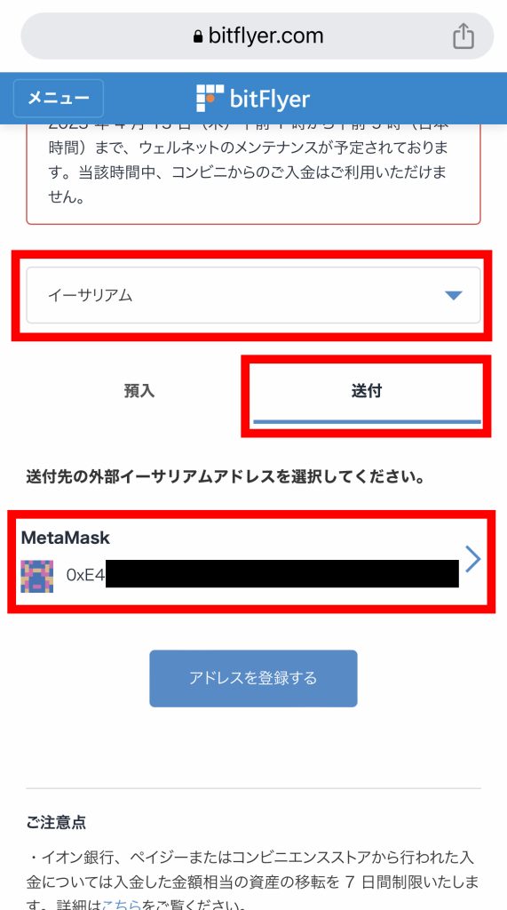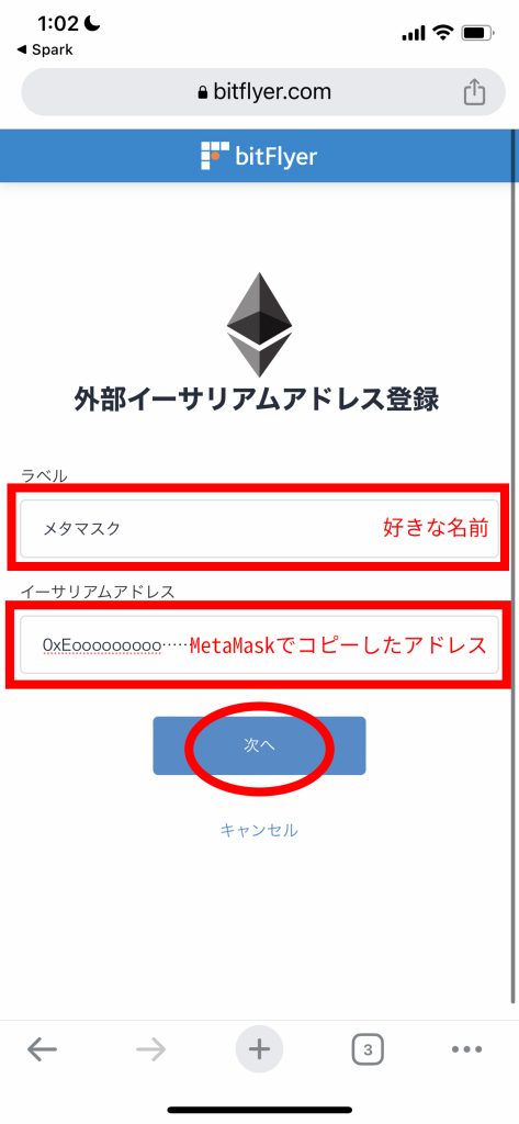 ここからは bitFlyer(銀行)とMetaMask(お財布)を行き来するよ。