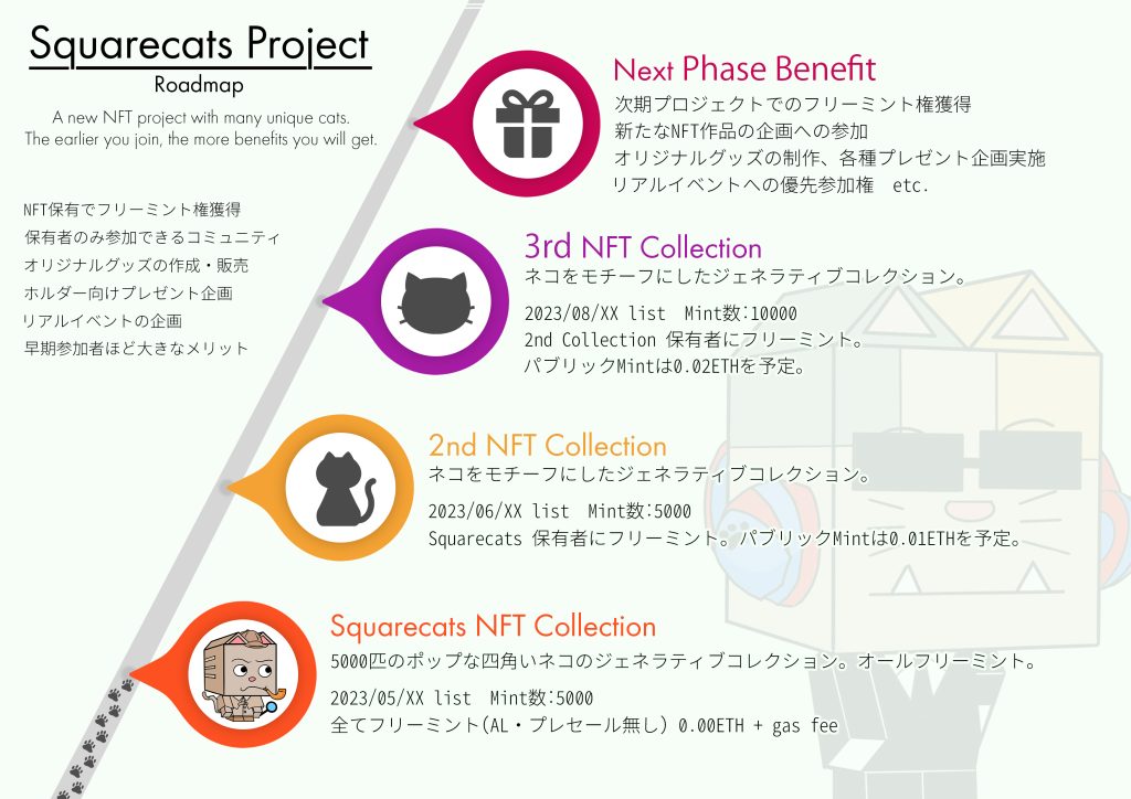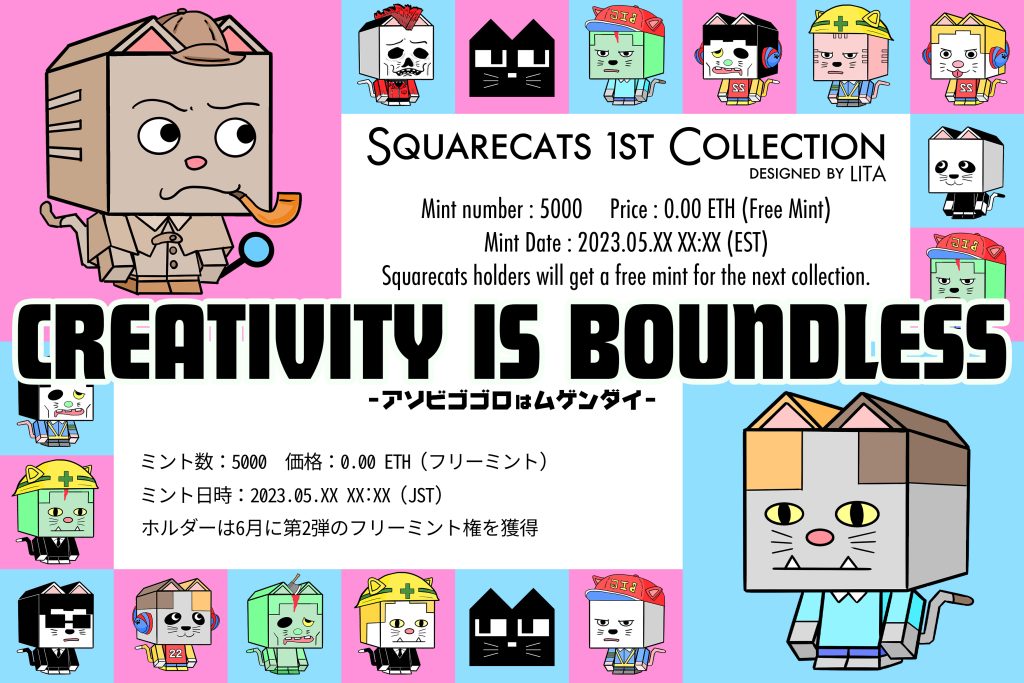 スクエアキャッツは、個性的なネコをモチーフにしたジェネラティブNFTのプロジェクト。